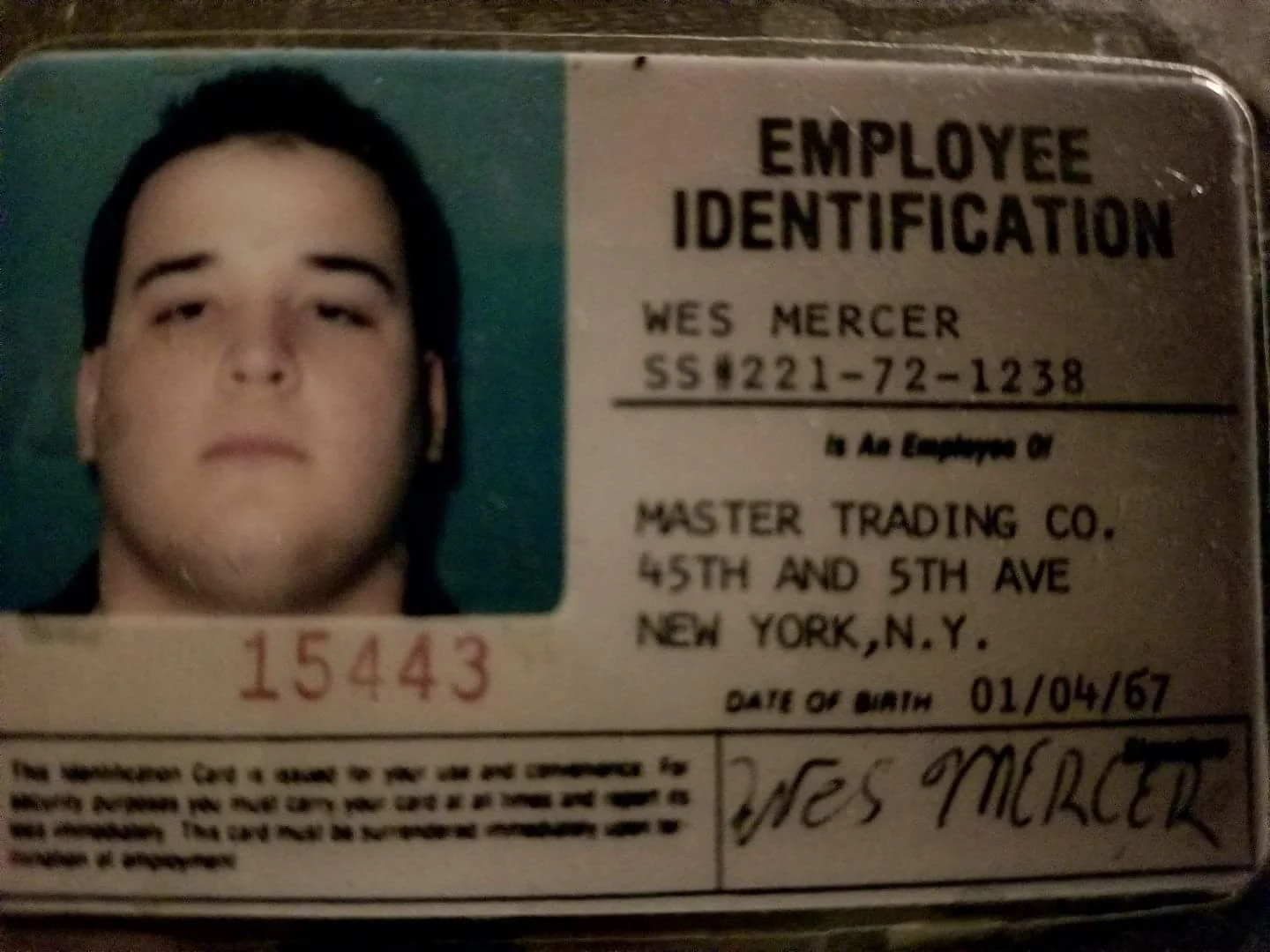 That was it. I handed over $25, and, was now in my mind…legal. The name I chose, on a whim, was…Wes Mercer. That day in the gym, I showed it off to someone and instantly was no longer Alexi, but Wes or Wesley.