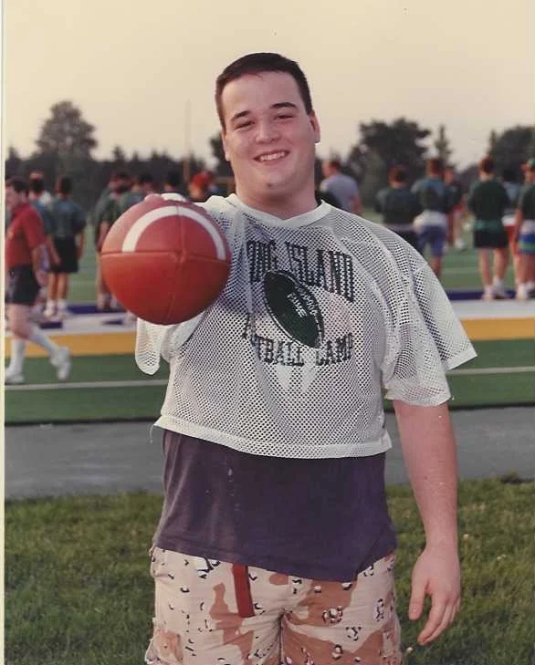 That first game was at home against a team called Mahopac. To us they were country bumpkins. The guy I would be going up against was a senior with a man-scaped beard and mustache. Before the game I went out to the field to soak in the pre game energy. I squatted in the middle of the field, picked up the wet grass, threw it into the air like I was Joe Montana, then went back to get my ankles taped. This began a three year ritual where Coach V, who was the number two coach and defensive line coach, would tape my ankles until they were basically a cast. We would joke around and go over plays. I loved Coach V. The team would then congregate in the old gym and wait for the game to start. It was a pretty serious vibe in that gym, but I found a kindred spirit in Troy Gordon.