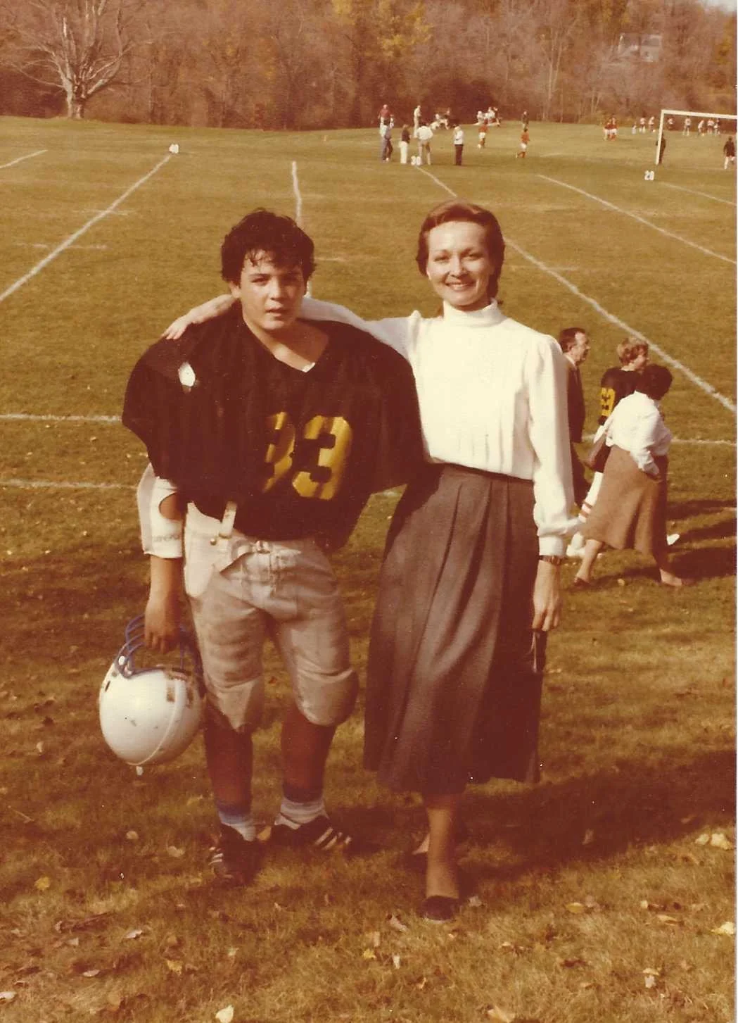 I was in my groove again at Nose. I became very quick at detecting a pass play and could be in the backfield raising havoc in two steps. I started racking up the sacks. They weren’t big hit sacks, no, I didn’t have room for that. The sacks were always me either jumping on the QB’s shoulders, catching him from behind, or pulling him down with one hand as I reached around whoever was blocking me (I have long arms). This was when I started hearing my mother in the crowd. She would yell things like “HOLD THAT LINE!” and other 1950s cheers. Everyone loved it. She never missed a game.